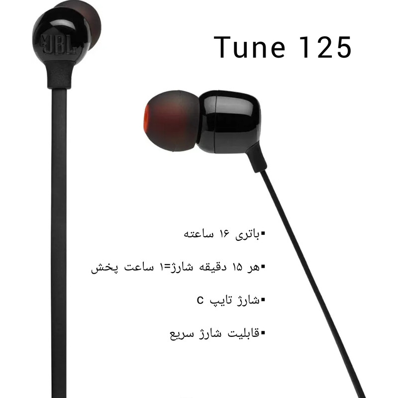 هدفون بی سیم مدل TUNE 125BT محصولی از برند جی بی ال است. این هدفون به صورتی طراحی شده تا در استفاده دراز مدت گوشتان را اذیت نکند. یکی از دلایل این ویژگی وزن سبک این مدل است. برای زمانی که قصد ورزش دارید، گردنی این هدفون کارایی بسیاری دارد. از طریق بلوتوث، این هدفون را به گوشیهوشمندتان متصل کرده و قابلیت پخش موسیقی و مکالمه را به شما میدهد. برای این مدل بلوتوث نسخه 5.0 در نظر گرفته شده و برد بلوتوث این هدفون تا 10 متر محاسبه شده است. با استفاده از این باتری شما قادرید تا 16 ساعت از این هدفون استفاده کنید و به هنگام خالی شدن شارژ کافیست تنها به مدت 2 ساعت آن را شارژ کنید تا فول شارژ شود.داخل جعبه این هدفون 3 تا سری یدک در سایزهای مختلف و کابل شارژ Type-C وجود دارد. این مدل به گردنی مغناطیسی مجهز شده و این ویژگی باعث شده تا این هدفون از گوشتان نیافتد و اگر استفاده نکنید بدون استرس از افتادن آن دور گردن خود آن را نگه دارید.